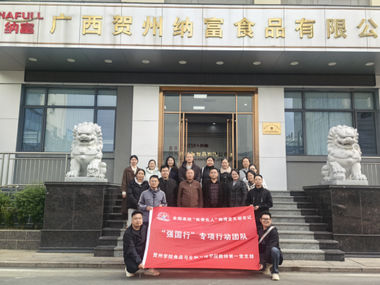 为深入贯彻党建引领校地企融合发展的指导思想,精准对接地方食品产业需求与高校人才培养目标,2025年12月6日,我院教师第一党支部组织“强国行”专项行动团队、研究生导师及研究生代表前往富川瑶族自治县,走访广西贺州纳富食品有限公司、广西呈香食品科技有限公司、富川润农丰食品有限公司等重点企业,开展实地调研,并与富川润农丰食品有限公司正式签订研究生培养基地协议。